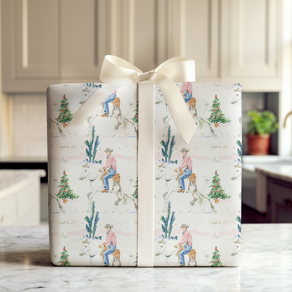 "Finally get to use this adorable western wrapping paper for a client..."
